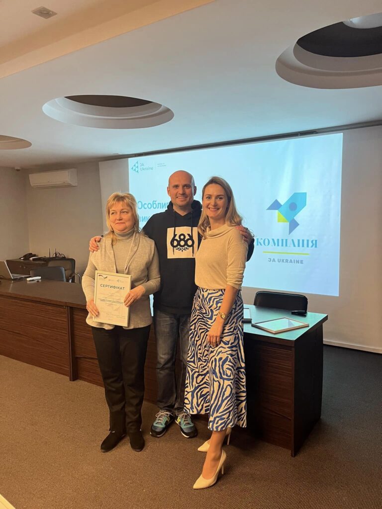 Сьогодні викладачі економіки Катерина Шийка та Natalia Sulyma взяли участь у тренінгу «Особливості викладання курсу «Компанія» у другому семестрі навчального року» від Junior Achievement Ukraine . У рамках тренінгу окреслені напрямки та шляхи розвитку учнівських міні-компаній та підготовка до учнівськоі ярмарки . Викладачі обговорили процес впровадження даного курсу та поділилися творчими здобутками своїх учнів у рамках проєкту. Далі буде![]()